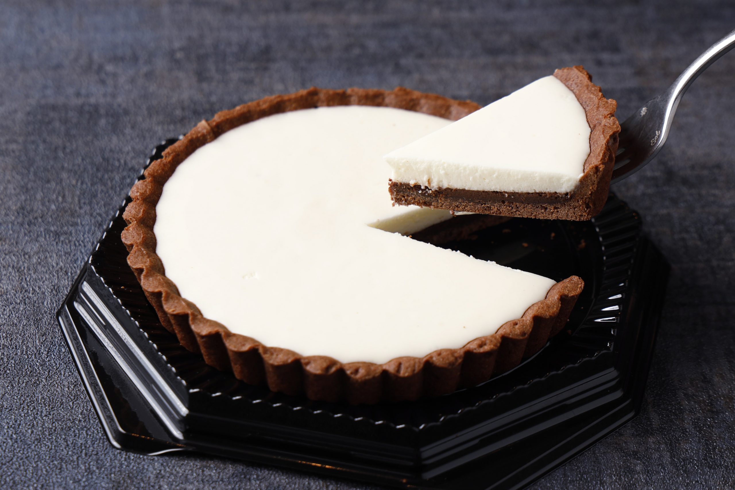ランスのクリームチーズを使⽤したレアチーズクリームを流した2層仕⽴てのタルトです。