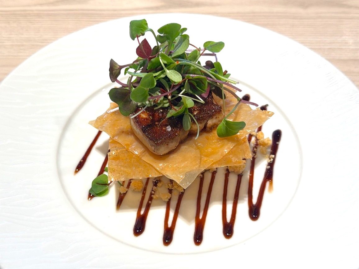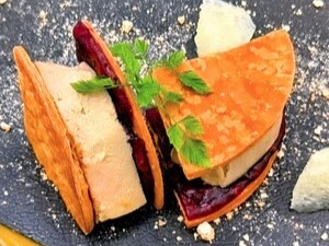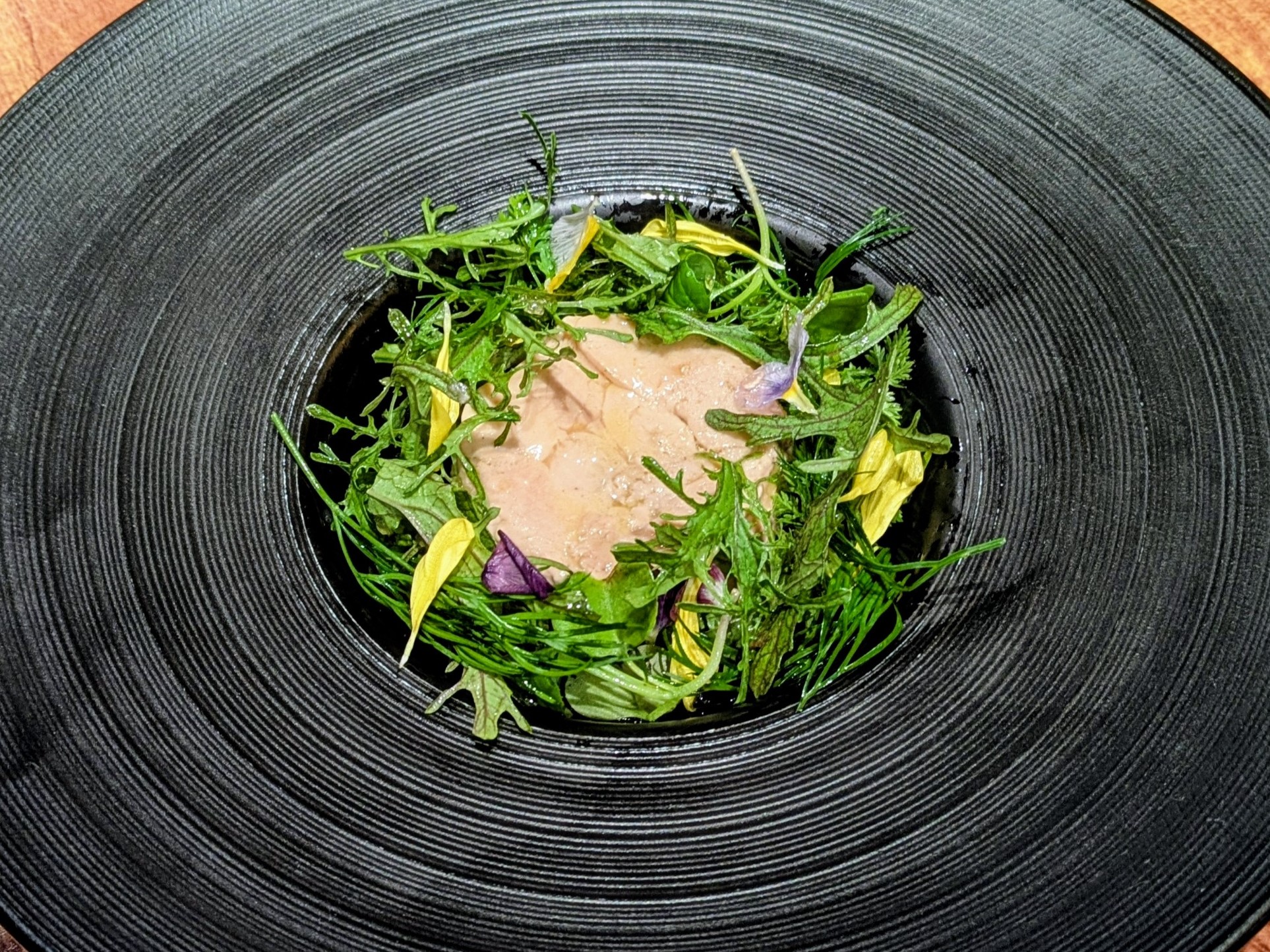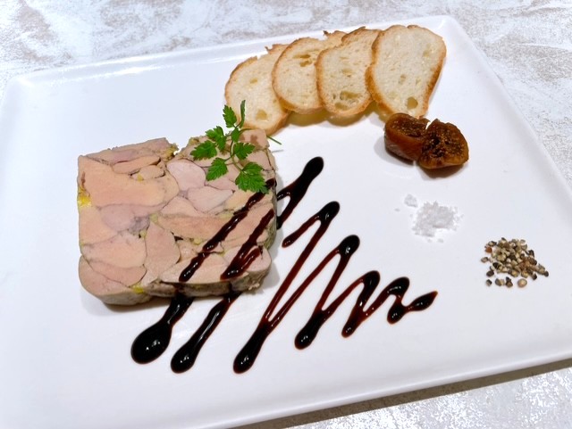 フォアグラテリーヌのサラダ仕立て 〜生姜香るコンソメジュレ〜 1,580円(税込1,738円) |