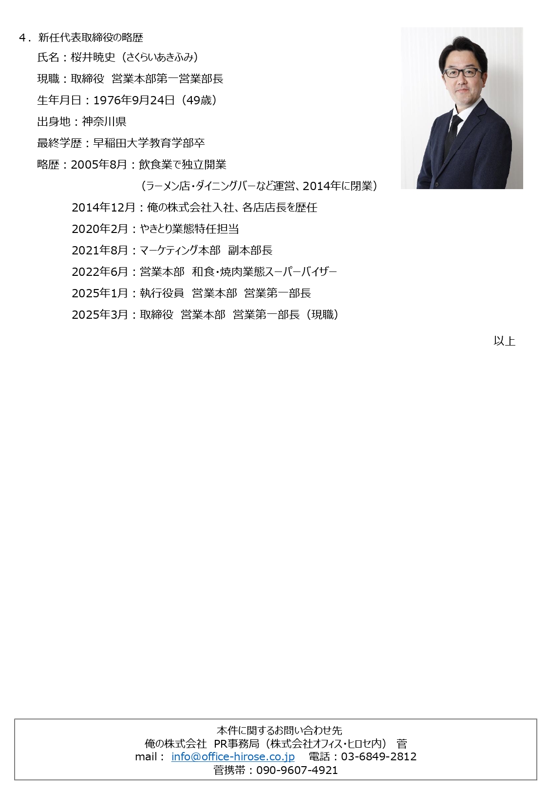 代表取締役異動に関するおしらせ
