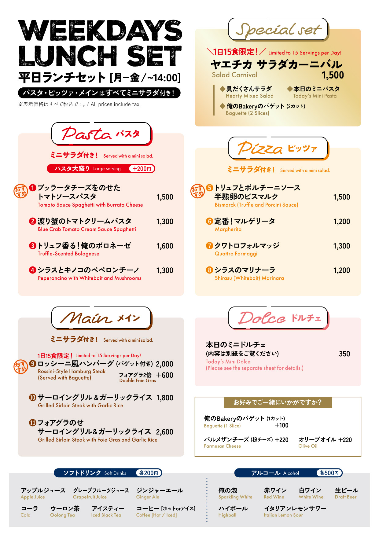 ワンドリンク、ワンフード以上のご注文をお願いしております。(平日ランチタイムを除く) |