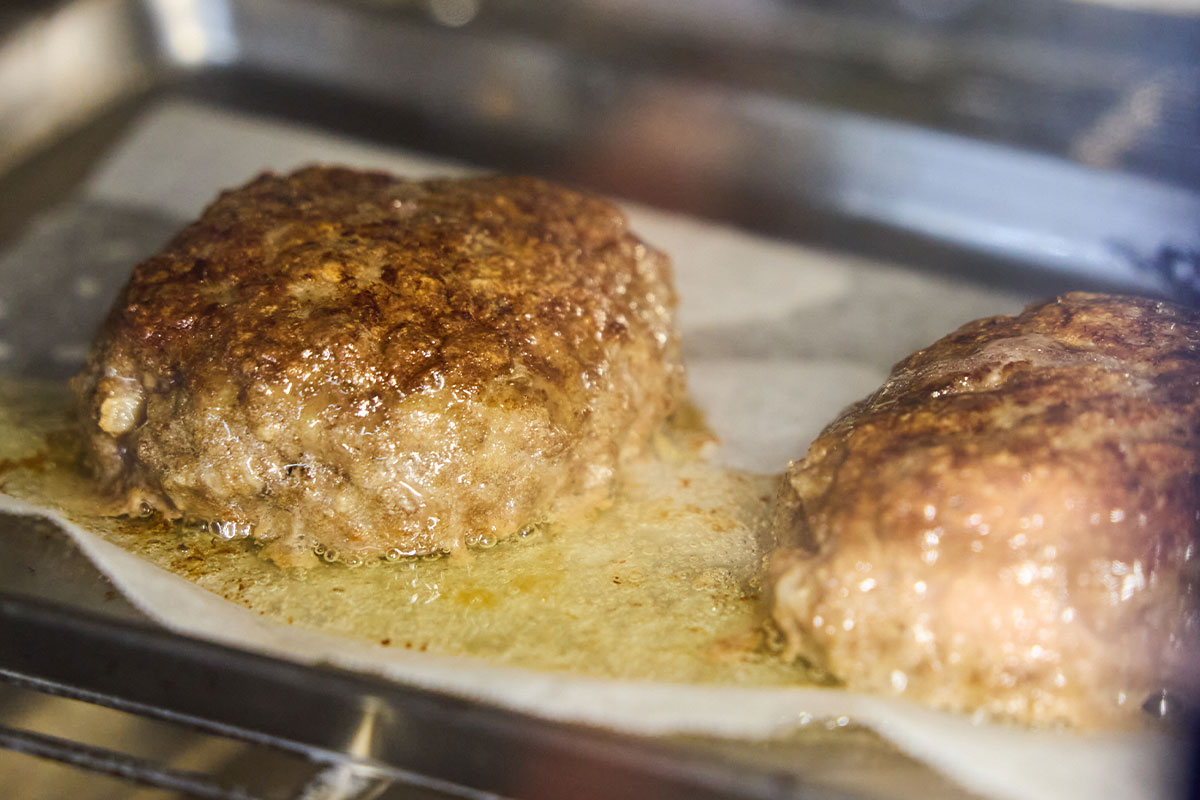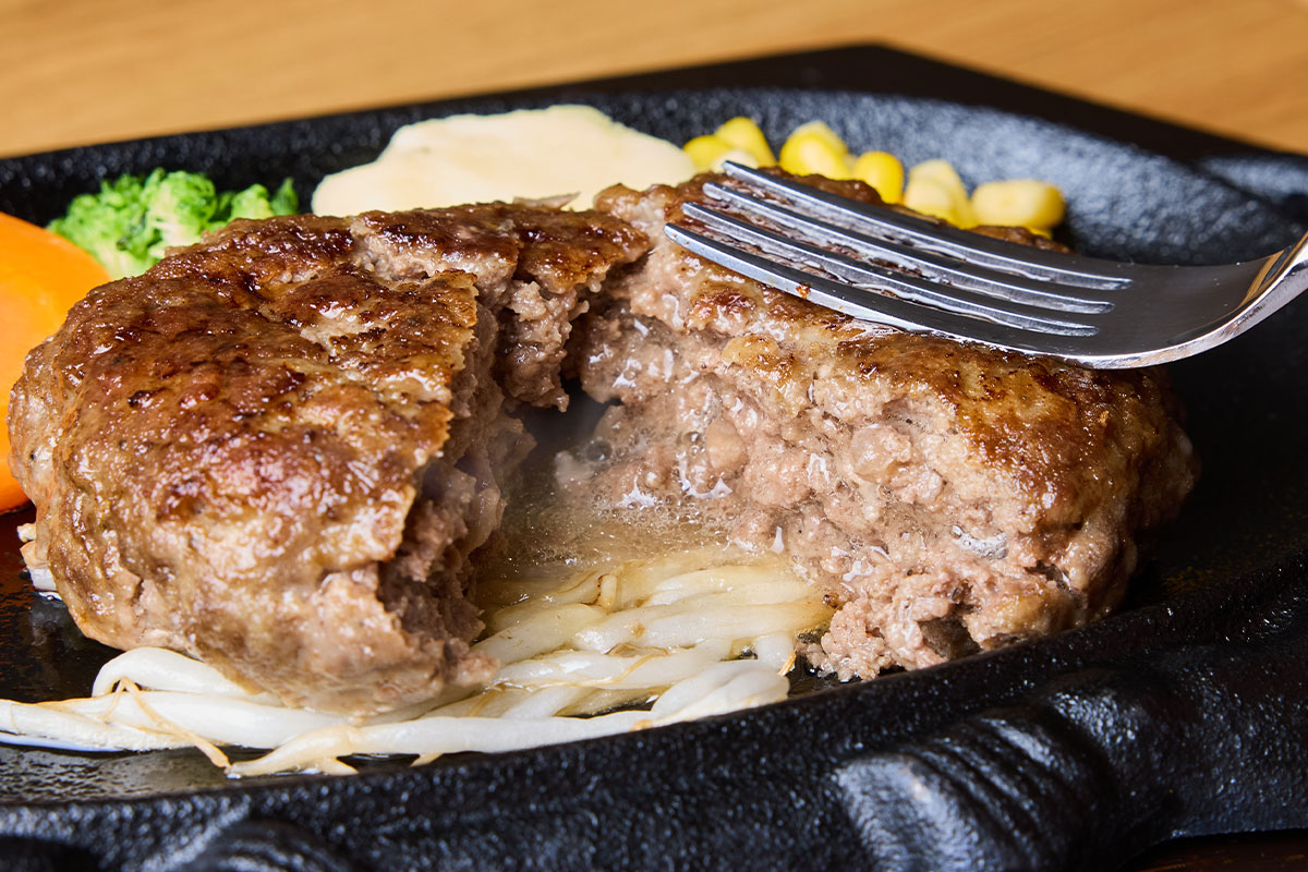 こだわりのハンバーグは和牛本来の味を楽しめるよう、粗挽きで成形。肉肉しい旨味をぜひご賞味ください。
