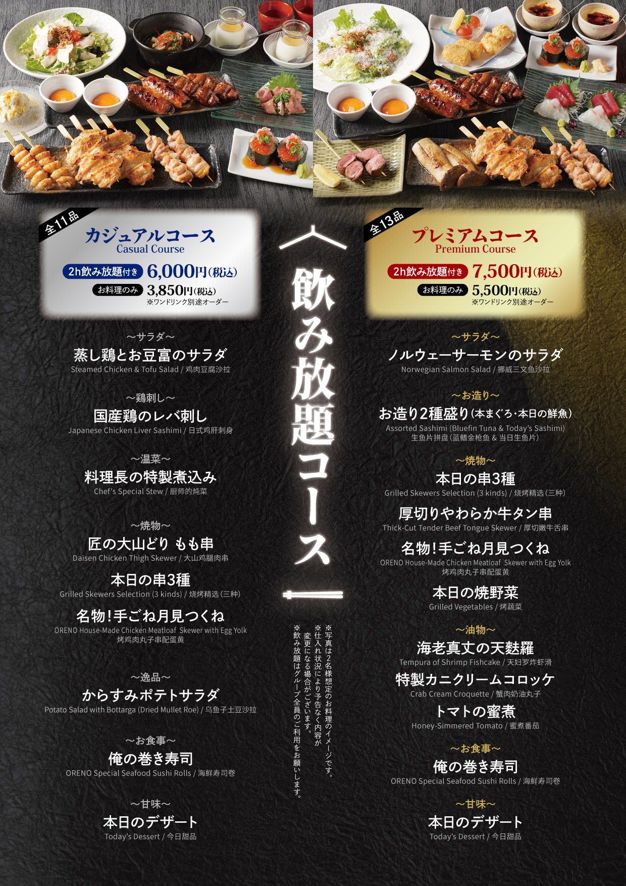 | 予約受付時間 | ご来店希望日の60日前から、2名様よりご予約を承ります。 【web予約】24時間受付中 ●予約が満席の場合でも、当日席をご用意しておりますのでどうぞお気軽にご来店くださいませ。 ご来店希望時間を下記よりお選びください。 ■月~金(※混雑時は2時間制とさせていただく場合がございます) ①17:00 ②17:30 ③18:00 ④18:30 ⑤19:00 ⑥19:30 ⑦20:00 ※金曜日のみ16:00からご予約を受付させていただきます。(12月31日まで) ■土・日・祝日 ①11:30 ②12:00 ③13:00 ④14:00 ⑤15:00 ⑥16:00 ⑦17:00 ⑧18:00 ⑨19:00 ⑩20:00 |