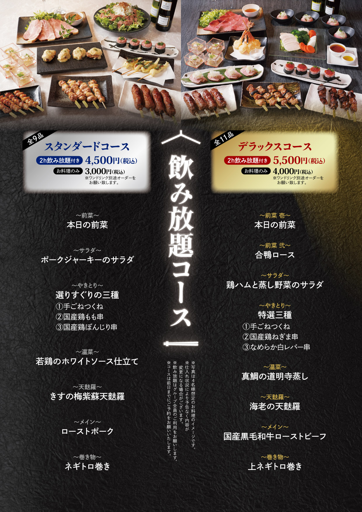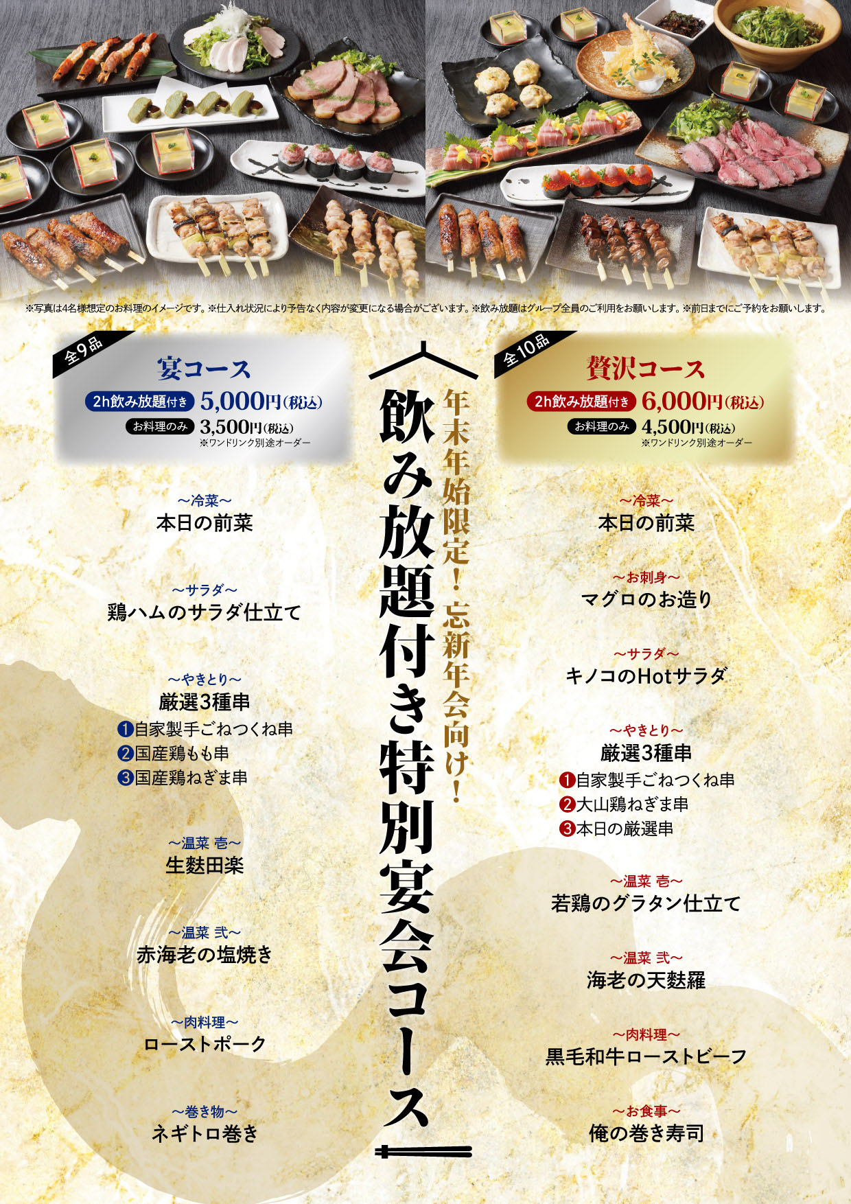 | 予約受付時間 | ご来店希望日の60日前から、2名様よりご予約を承ります。 【web予約】24時間受付中 ●当日のご予約は、当日の朝9:45まで承っております。 ●予約が満席の場合でも、当日席をご用意しておりますのでどうぞお気軽にご来店くださいませ。 ご来店希望時間を下記よりお選びください。(混雑時は2時間制とさせていただく場合がございます) ①16:00 ②16:30 ③17:00 ④17:30 ⑤18:00 ⑥18:30 ⑦19:00 ⑧19:30 ⑨20:00 |
